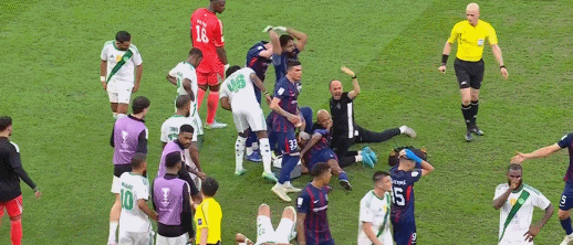 主裁果断出示红牌将其罚下,吉达国民剩余时间不得不少打1人。而雅伊罗也被担架抬下,随后被换下场。